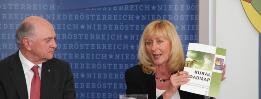 Im Rahmen einer Pressekonferenz informierten der Vorsitzende der Europäischen ARGE Landentwicklung und Dorferneuerung Landeshauptmann Dr. Erwin Pröll sowie Geschäftsführerin Theres Friewald-Hofbauer über das EU-geförderte Projekt „European Rural Visions 2020“ und damit auch über Zukunftsperspektiven für Landentwicklung und Dorferneuerung in Europa.